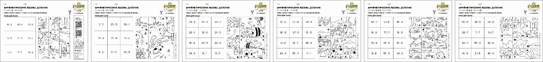 Этот пазл хорош тем, что ребёнок наглядно видит, правильно ли он делит. Ему предстоит вырезать из шаблона картинки с ответами и поместить их на клетки с примерами. Если всё решено верно, получится изображение.
