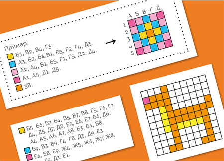 Нужно дорисовать недостающие части симметричных снежинок. Дети осваивают понятие симметрии, учатся точно проводить линии, оценивать размеры, количества клеточек.