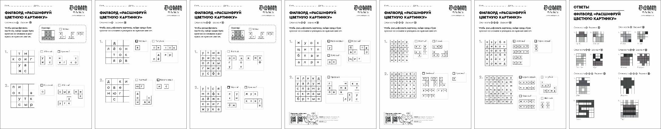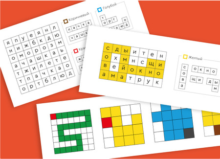 Задание на чтение, логику и внимательность. Через многократное сравнение букв, у детей закрепляется их образ. Чтобы расшифровать картинку, нужно найти среди букв кусочки со словами и раскрасить их нужным цветом.