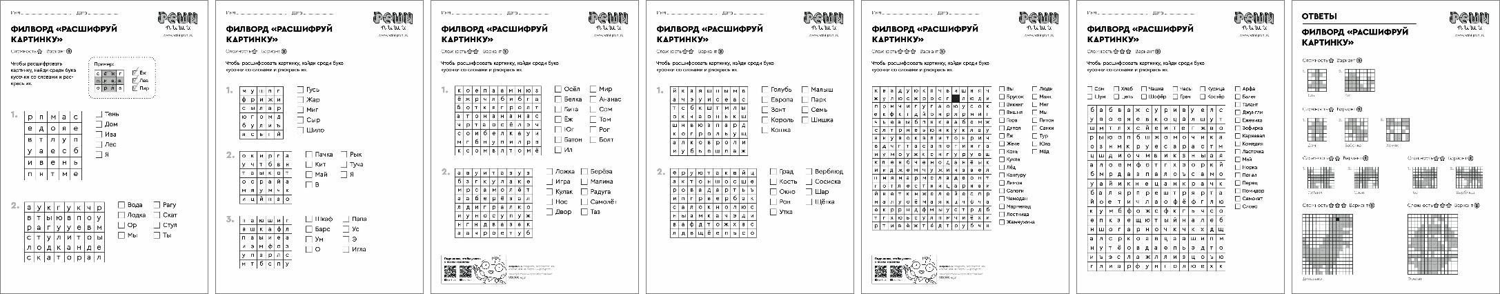 Тренируем чтение, а заодно — внимательность и логику. Чтобы расшифровать картинку, нужно найти среди букв кусочки со словами и раскрасить их.