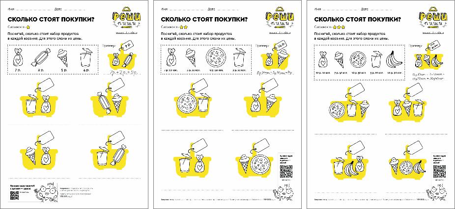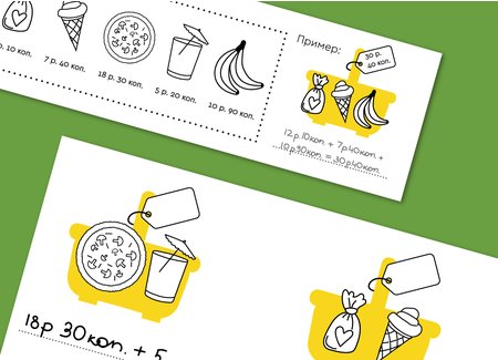Посчитай, сколько нужно заплатить за покупки. Учимся сложению денежных единиц.