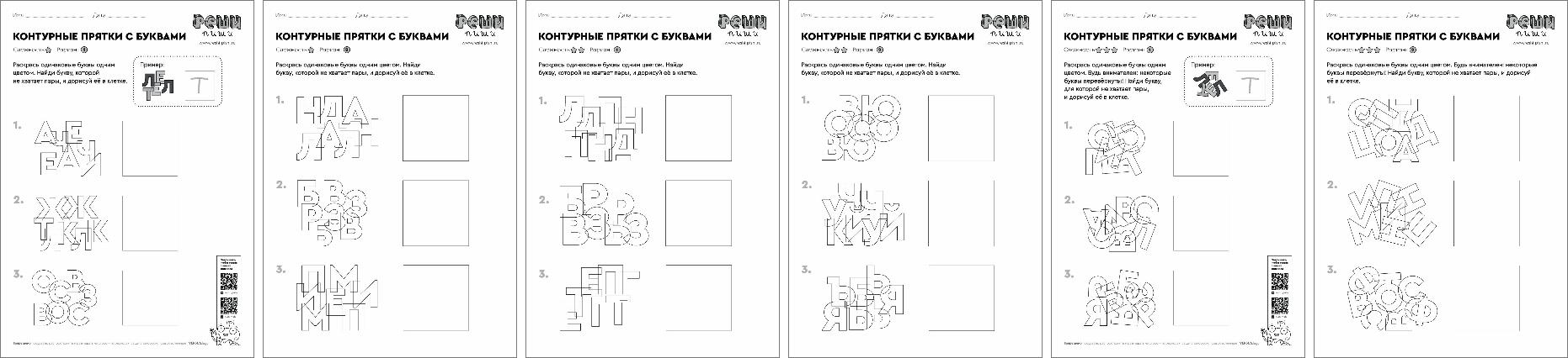 Задание помогает закрепить у ребёнка образ буквы, тренирует умение видеть и различать буквы в непривычном виде. В задании предстоит найти пары одинаковых букв и дорисовать ту, для которой не хватило пары.