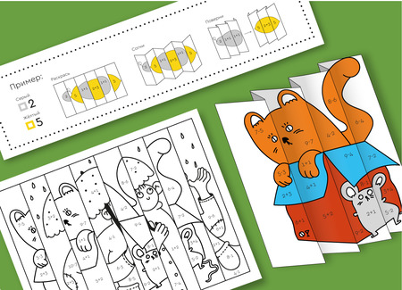 Агамограф — оптическая иллюзия, которая не оставит равнодушным ни ребёнка, ни взрослого. Для получения изображения, нужно решить примеры и закрасить фрагменты рисунка нужным цветом. Затем согните картинку гармошкой по линиям и взгляните на неё под разными углами. Волшебство начинается!