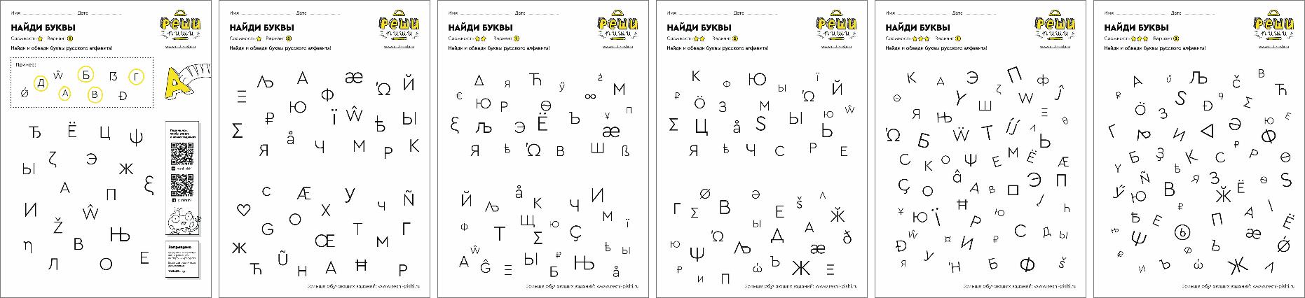 Развиваем внимательность и учимся отличать буквы от других символов. В задании нужно найти и обвести буквы русского алфавита.