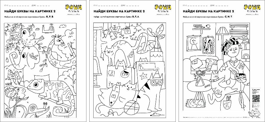 Задание тренирует внимательность и умение видеть буквы. Нужно найти на картинке как можно больше заданных буквы.