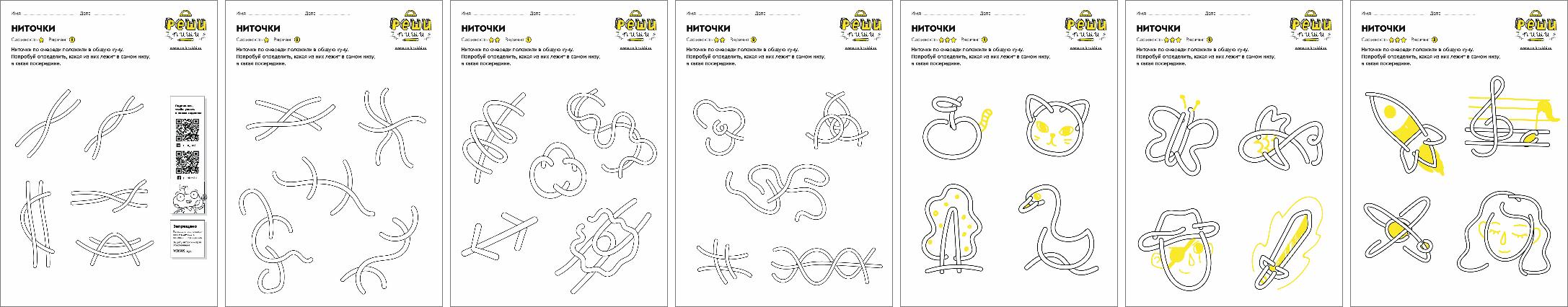 Необычные задания на внимательность и пространственное мышление. Ниточки по очереди положили в общую кучу. Нужно определить, какая из них лежит в самом низу, а какая посередине.