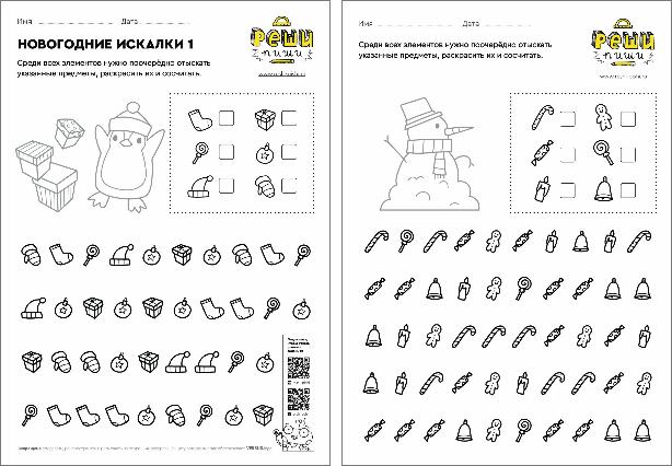 Раскраски на внимательность, которые тренируют навык счёта. В задании среди всех элементов нужно поочерёдно отыскать указанные предметы, раскрасить их и сосчитать.
