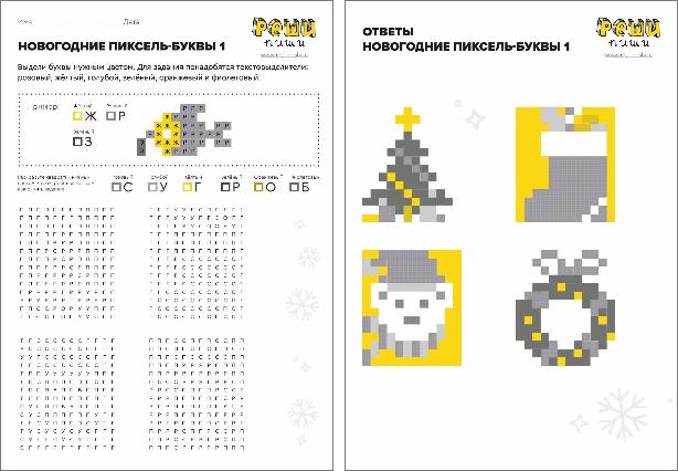 Нужно быть очень внимательным, чтобы закрасить правильным цветом буквы и расшифровать новогоднюю картинку. Задание выполняется текстовыделителями!
