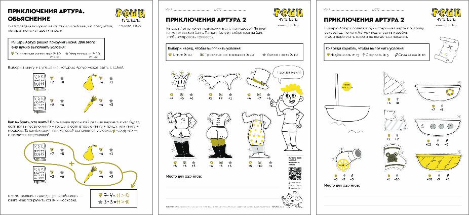 Чтобы быстрее разобраться в решении комплекта про Артура, рекомендуем перед ним выполнить комплект «Пикник. Уровень 2», где тренируем состав числа и отрабатываем механику решения.