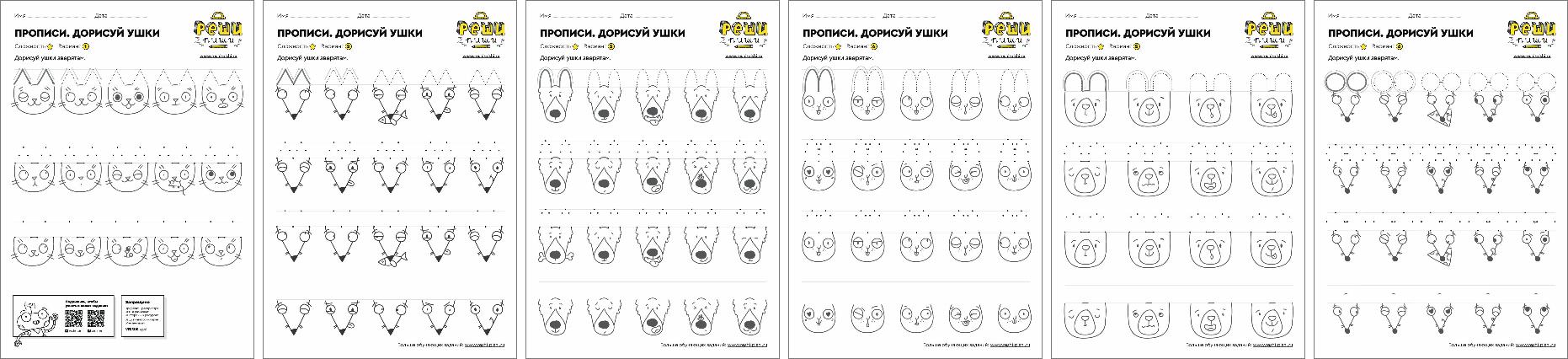 Весёлые прописи для отработки ровных уголков и плавных линий. Рисуем ушки зверятам и готовим руку к письму.