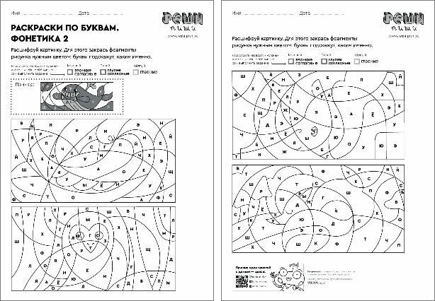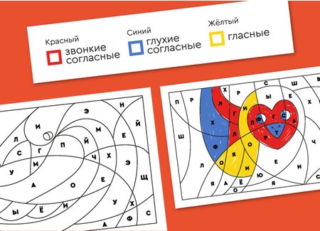 Интересное сочетание тренажёра мелкой моторики и знакомства с буквами. В задании нужно расшифровать картинку. Для этого предложите ребёнку закрасить фрагменты рисунка нужным цветом: буквы подскажут, каким именно.