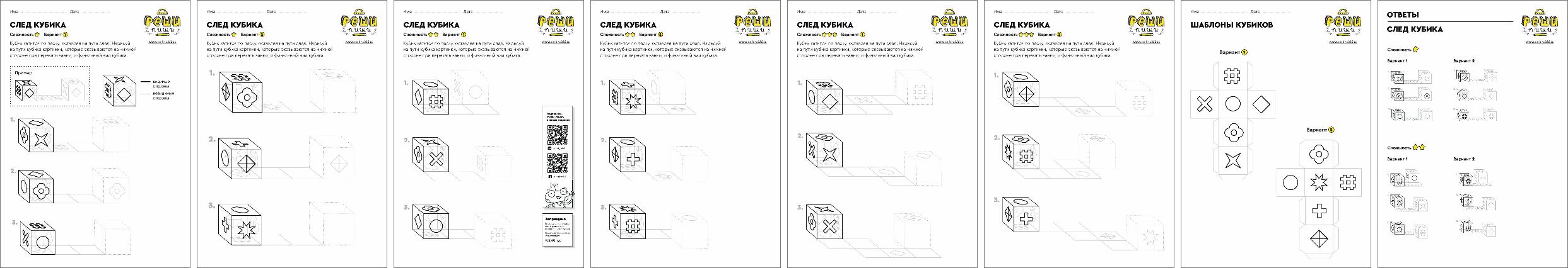 Задание развивает 3D-мышление: способность «крутить» предмет в голове. Шаблоны кубиков помогут быстрее разобраться с заданием и проверить своё решение.
