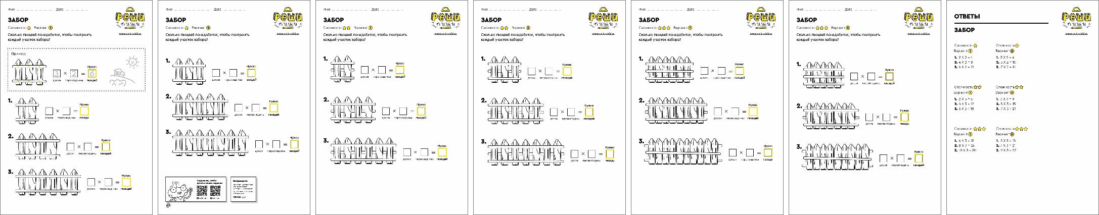 Сколько понадобится гвоздей для постройки разных заборов? Ребёнок видит закономерности умножения и учится не зубрить, а содержательно понимать суть процесса.